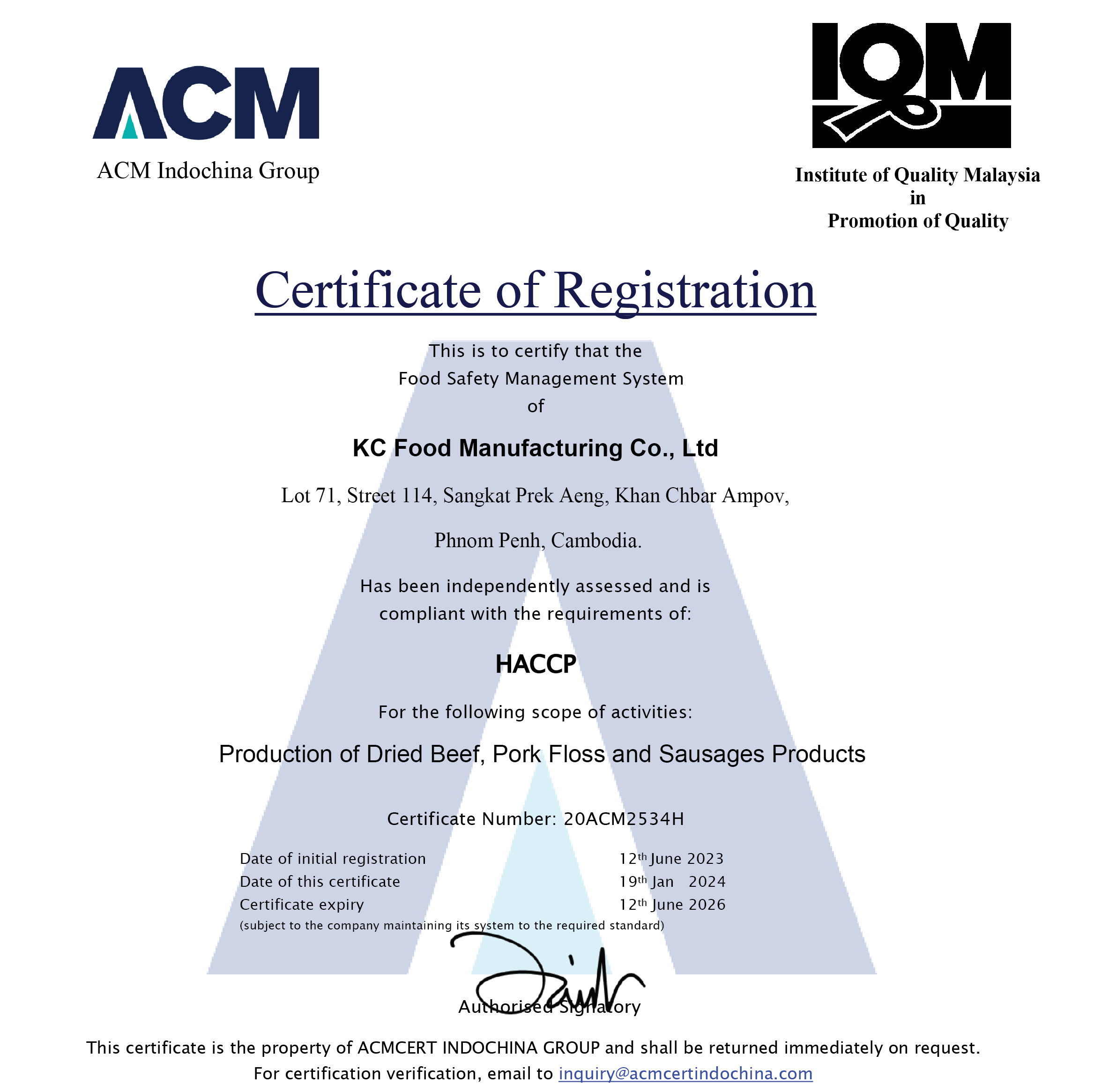 Our relentless commitment and concerted efforts since our existence have eventually brought us a promising result to being the very first and the only one local HACCP-certified meat producer by ACM-UK (Cert No. 20ACM2534H) in the country.
